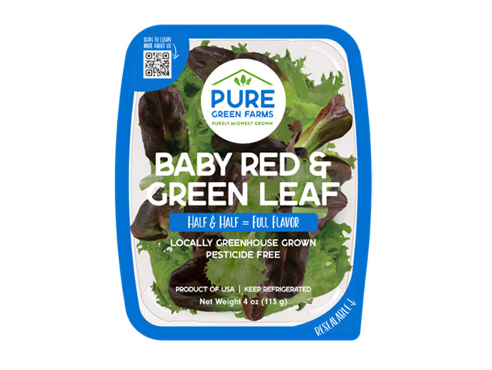 Launching in 2021, Pure Green Farms grows, packs and ships leafy greens hands-free in the Midwest.  Their purpose is to grow responsible fresh produce through innovative farming.  Located in South Bend, Indiana, the farm uses environmentally friendly practices to grow their greens through its high-tech, climate-controlled space and hydroponic growing system to produce the highest quality of leafy greens for their customers year-round. Pure Green Farms’ vision is to reimagine the way of farming with their innovative technology to provide fresh produce consumers can trust.