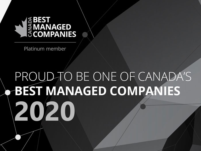 - Canada’s Best Managed Companies Winner (award recipients that have re-applied and successfully retained their Best Managed designation for two additional years, subject to annual operational and financial review)