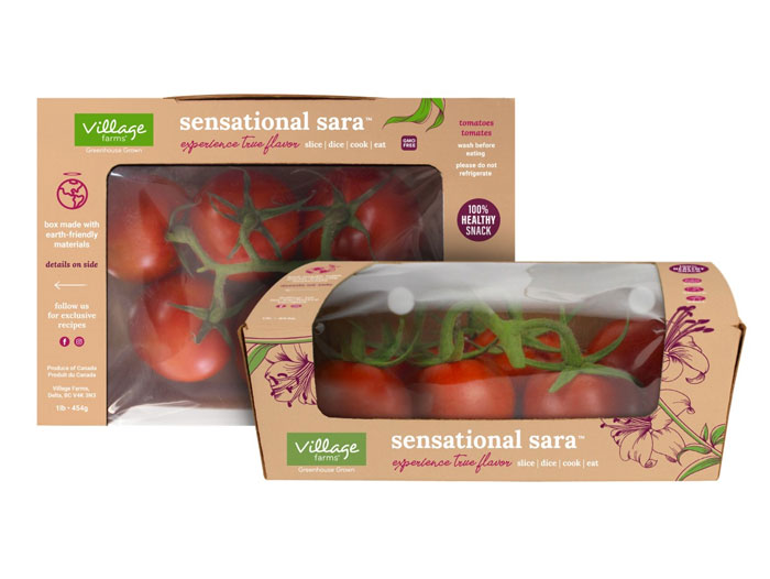 Village Farms is thrilled to offer this environmentally responsible packaging option for the debut of its unique newest tomato variety Sensational Sara in a 1lb box. Village Farms is also offering this box for their 1lb Maverick Mix tomatoes, a lovely mix of specialty tomatoes in assorted shapes and sizes. They are hoping this type of packaging will gain further momentum with their retail partners. Aquino also mentioned, “We have a number of retailers showing interest and some with sustainability initiatives already in place giving preference to suppliers that can deliver on protecting the environment and sustainable packaging is one way such way.”
