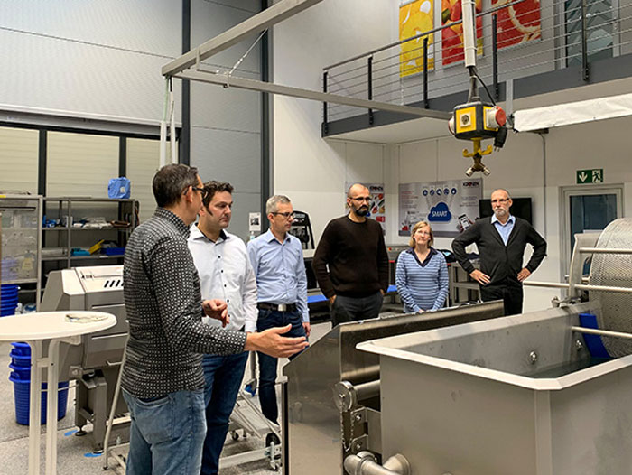 Since 2019, along with the Leibniz Institute for Agricultural Engineering and Bioeconomics (ATB Potsdam), Gartenfrisch Jung GmbH and the Leibniz Institute for Plasma Research and Technology e.V. (INP Greifswald) KRONEN has been working on developing an innovative washing process for fresh cut lettuce. During the Project Meeting at KRONEN´s Head Office, a washing machine specially adapted for this decontamination process has now been tested. The next step in the project sees an extensive testing phase actually in the production line of one of the project members Gartenfrisch Jung, manufacturer of fresh-convenience.
