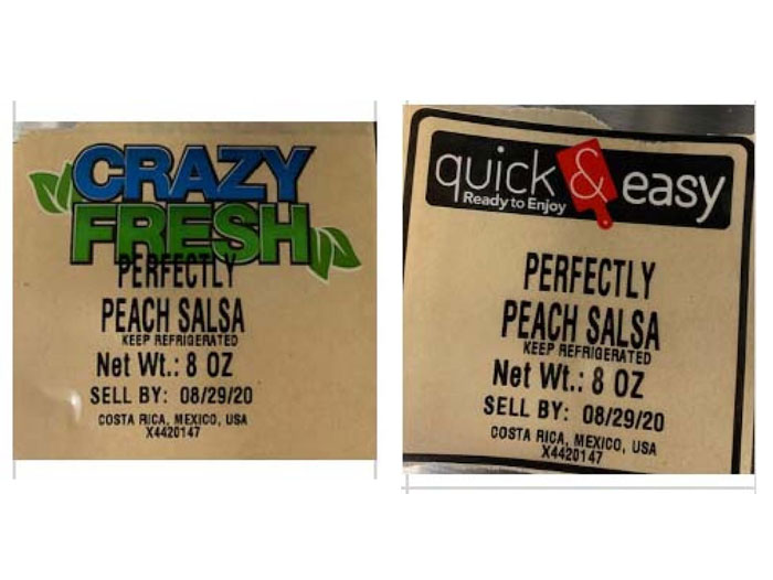 | 795631 820270 | Crazy Fresh Perfectly Peach Salsa | Crazy Fresh Perfectly Peach Salsa | 8 oz. | See below | 6/25/2020 to 8/26/2020 |