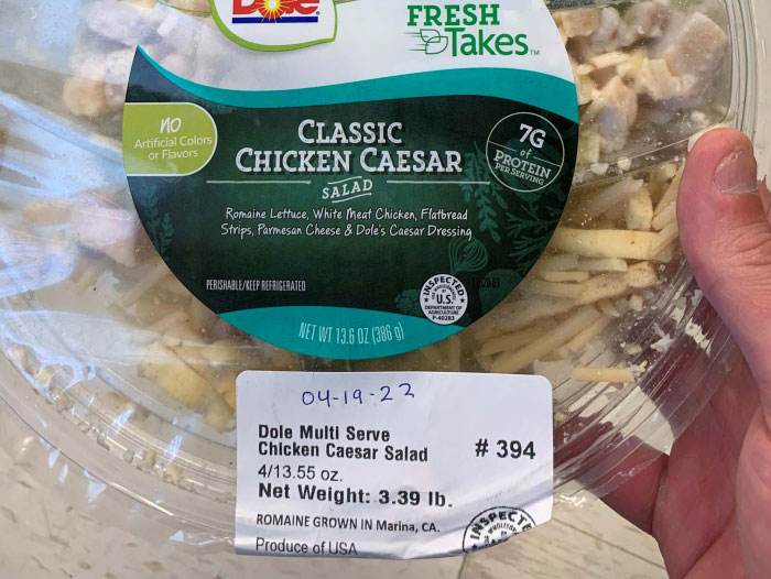 The RTE Chicken Caesar Salad products were produced April 19, 2022. The following product is subject to recall [view labels]: