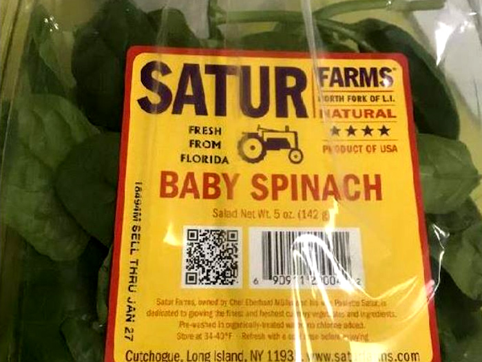 Satur Farms, 3705 Alvah’s Lane, Cutchogue, NY 11935 is voluntarily recalling Baby Spinach and Mesclun with the specific lot numbers listed below because it has the potential to be contaminated with Salmonella, an organism which can cause serious and sometimes fatal infections in young children, frail or elderly people and others with weakened immune systems. Healthy persons infected with Salmonella often experience fever, diarrhea (which may be bloody), nausea, vomiting and abdominal pain. In rare circumstances, infection with Salmonella can result in the organism getting into the bloodstream and producing more severe illnesses such as arterial infections (i.e. aneurysms), endocarditis and arthritis. The following product was distributed in New York and Florida through retail stores.