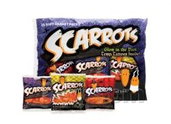 BAKERSFIELD, Calif., Oct. 12 — Late this summer, A Bunch of Carrot Farmers, led by Bolthouse Farms, launched an ambitious branding campaign for Baby Carrots. To date, the "Eat 'Em Like Junk Food" campaign, which mocks junk food marketing tactics and challenges the establishment's dominance over snacking culture, has been a wild success. This October, the campaign is going national, with the launch of Scarrots, a new kind of Halloween treat. Scarrots packaging mirrors Trick-or-Treat packs, offered in a master bag containing 25 single-serve 1.7 oz bags in 3 unique designs. Also included is a sealed pouch containing 25 temporary glow-in-the-dark tattoos of masquerading baby carrot characters. And this time they want you to "Eat 'Em Like It's Halloween."