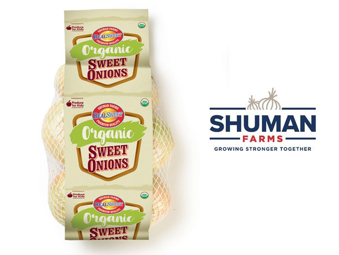 Reidsville, GA – Shuman Farms, the leading year-round producer and shipper of Vidalia and Peruvian sweet onions, announces big changes to the look, feel and sustainability of their organic packaging. Through the use of a different netting and thinner film and plastic in the new consumer bags will be reduced by 38 percent while maintaining the structural integrity of packaging.