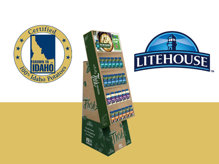 EAGLE, ID – Two category leaders are spicing up side dishes as well as produce sales with a new retail promotion for the 2019 holiday season. The Idaho Potato Commission (IPC) and Litehouse®, Inc. are partnering on freestanding display units with coupon pads for the “Mix, Mash & Be Merry” promotion running from Nov. 1 through Dec. 31. The coupon offers shoppers $1 off any Litehouse® freeze-dried herb with the purchase of a 5-pound bag of Idaho® potatoes. The shipper, billed as a holiday sides promotion, features two cases each of four Litehouse® herb products: chives, garlic, parsley, and poultry herb blend.