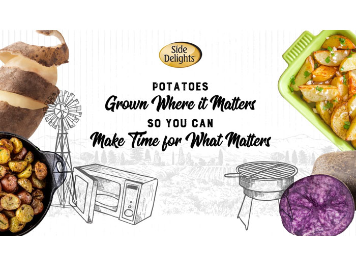 San Francisco, CA – Based on the success of the 2019 campaign ‘Grown Where it Matters’ and in response to shoppers’ evolving buying habits and cooking needs, Side Delights® evolved the campaign in 2020 to, ‘Time for What Matters.’ This new brand campaign reminds consumers that potatoes, America’s favorite vegetable, can be made quickly and easily, freeing up precious time for what matters most, like family and friends. All Side Delights® potato product lines are supported by this campaign with their positive nutritional profile, aspects of convenience, and continued budget-friendly fresh produce positioning.