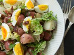 “Making Side Delights® Steamables™ potatoes an integral ingredient to a green salad or adding a healthy twist to a traditional potato salad emphasizes the performance potatoes deliver across a range of potato salad options.“ noted Kathleen Triou, President and CEO of Fresh Solutions Network. “#potatosaladredux challenged bloggers to come up with innovative recipes such as the French potato salad with warm bacon vinaigrette, from Sabrina Modelle at The Tomato Tart http://www.thetomatotart.com/recipe/french-potato-salad-warm-bacon-vinaigrette/.”