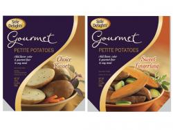 In response to growing consumer demand and widespread retailer requests, the Side Delights Gourmet Petites line is growing as well! Two exciting new offerings, Sweet Fingerlings and Choice Russets, will expand this powerhouse lineup to eight delicious options. Sweet Fingerlings are scrumptious baby sweet potatoes with moist orange flesh and thin, tender skin that eliminates the need to peel. Choice Russet petite potatoes have a classic, delicate potato flavor with a firm texture and thin brown skin that brings a rustic elegance to any meal, also without the need to peel.
