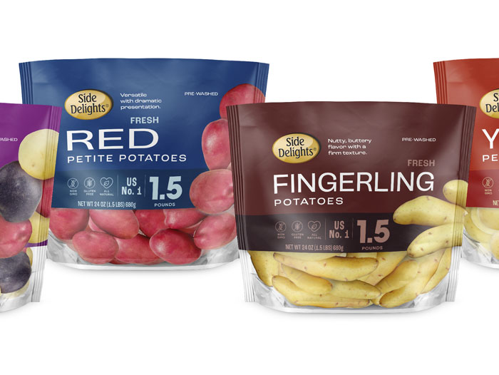 The new packaging design boasts contrasting colors between the bag and the potato to brighten the display and invite shopper exploration with a bold, clean, contemporary approach. Side Delights® Petite potatoes are available in 1.5lb and 3lb stand-up gusset bags, various mesh pillow pack sizes, and 1lb netted pouch with wine bottle tag. All packages prominently display the potato type and the pack size for easy consumer shopping.