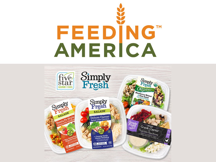 (Ontario, CA) – In the wake of the global COVID-19 pandemic, there is no better time to be of service to those in need and FiveStar Gourmet Foods is taking action by donating 15,000 pre-packaged complete meal salads under the Simply Fresh® brand to Feeding America®, the nation’s largest domestic hunger-relief organization, who will be distributing the salads to the local communities that they serve.