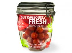 The re-sealable Outrageously Fresh mason jar bags include: 10.5 oz, grape, cherry and gourmet medley tomatoes grown by SunSelect, 14-oz. mini cucumbers, and 1-lb mini peppers grown by Divemex and are available exclusively from Oppy.