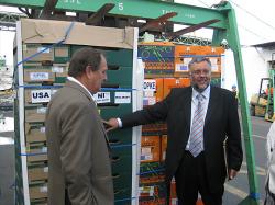 The Philadelphia and South African produce community marked the beginning of the South Africa summer citrus season by celebrating the first pallet unloaded from the first shipment at the Holt Marine Terminal in Gloucester City, N.J.