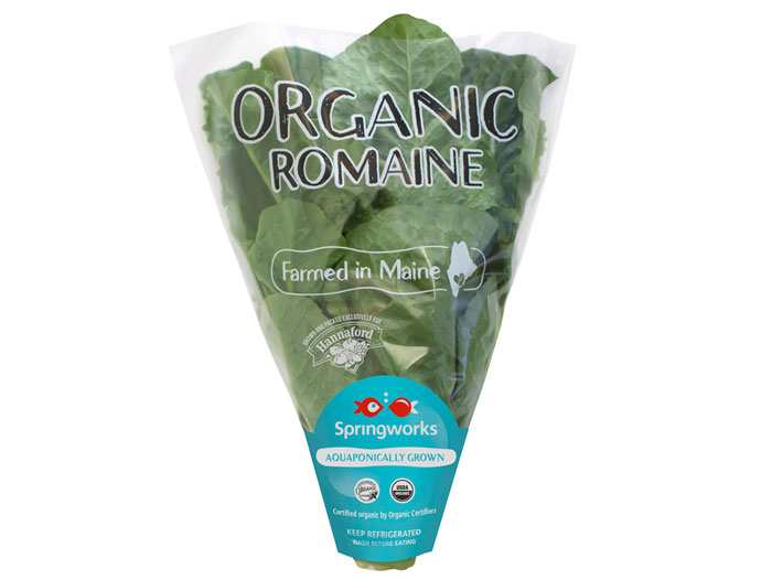 Lisbon, ME, — Springworks Farm, the largest and first certified organic aquaponic farming operation in New England, today announced that it is now the exclusive provider of whole head romaine lettuce to Hannaford Supermarkets in Maine, New Hampshire, and Massachusetts.