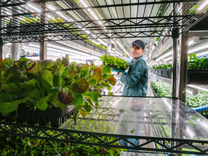 The new Shepherdsville facility showcases the latest version of the Square Roots platform, which increases yields by 30% and features a range of automation technologies for key functions including seeding, harvesting, and sanitization. Inside the farm, the local team uses Square Roots’ proprietary software to manage every aspect of growing—from planning production tasks to monitoring plant health. Meanwhile, all Square Roots farms are USDA Harmonized GAP+ Certified for the highest levels of food safety.