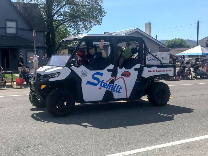 “The Mathison’s enjoy supporting the community every year and always partake in the fun,” says Pepperl. “Tate drives a Stemilt-decorated Polaris, Kyle rode on a 1926 Ford Model-T sporting many of Stemilt’s branded products and West drove the classic Stemilt Volkswagen Ladybug with former Apple Blossom festival royalty. It’s a family event and fun way to celebrate the new crop beginning.”