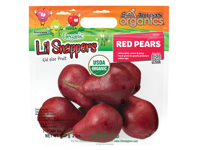 Shales suggests that retailers run Sparkrimson ads starting mid-August and into the second week of September. Packaging options to feature within these ads include Stemilt’s 6lb. Rushing Rivers™ pear bag and the popular Lil Snappers® organic 2lb. and conventional 3lb. pear bags. All of these bags can be set up on their own or combined with bulk to create a visually appealing and hard-to-miss Sparkrimson display.