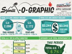 WENATCHEE, Wash. – Stemilt Growers’ FruitTracker category management program has released a new Stemilt-O-Graphic that provides insight into apple category performance across the U.S. for four weeks in January 2015, and compares it to the same timeframe the year prior.