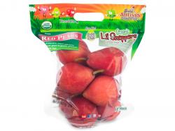 “Retailers could have fun merchandising the trio of colors of these organic pears,” states Shales. “The coloring of Red Pears mixed with the beautiful coloring of the green Concorde can make some really visually stimulating displays. Plus, Lil Snappers® pouch bags are built with the ability to stand up on their own. With that in mind, retailers can build displays using the variety of colors to create some visual separation to highlight each variety.”