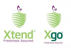 The logo's bright green shield-like shape represents the underlying advantages of Xtend and Xgo: protecting and preserving freshness, firmness and flavor. The diagonal stripes and the purple leaves illustrate wrapping fresh produce.