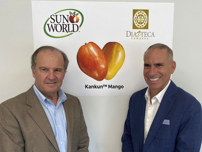 Bakersfield, CA. – Sun World International, LLC is pleased to announce the acquisition of the Kankun™ mango variety from Diazteca, a strategic addition to its nascent mango breeding and licensing program and the first commercial Sun World mango variety available for license. The signing ceremony took place in San Diego, CA on June 6th, 2023, attended by David Marguleas, Chief Executive Officer of Sun World and Ismael Diaz, Director General of Diazteca.