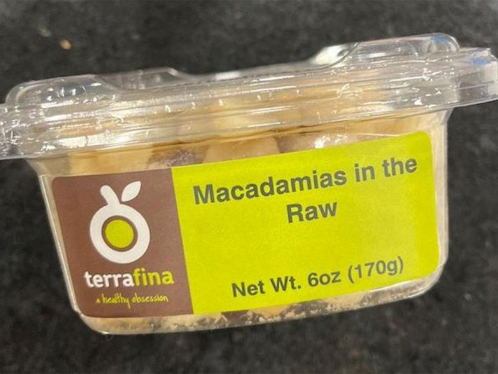 Sunco and Frenchie LLC of Pine Brook, New Jersey is recalling Terrafina brand Macadamia in the Raw packed in 6 oz plastic containers, because it has the potential to be contaminated with Salmonella, an organism which can cause serious and sometimes fatal infections in young children, frail or elderly people, and others with weakened immune systems. Healthy persons infected with Salmonella often experience fever, diarrhea (which may be bloody), nausea, vomiting and abdominal pain. In rare circumstances, infection with Salmonella can result in the organism getting into the bloodstream and producing more severe illnesses such as arterial infections (i.e., infected aneurysms), endocarditis and arthritis.