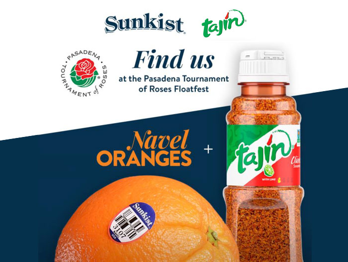 Sunkist’s Senior Director of Global Marketing, Christina Ward, added, “We are thrilled to be a part of the annual celebration and tradition of the Rose Parade’s Floatfest. Sunkist will be there, alongside Tajín, to sample our delicious California-grown citrus with the great taste of Tajín’s chile and lime seasonings.”