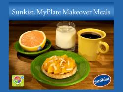 MyPlate inspires us to build healthy meals with healthy choices. At a glance, it symbolizes the importance of choosing a variety of foods from all food groups, focusing on making half your plate fruits and vegetables. The Sunkist Meal Makeover program incorporates these concepts and recommendations of the Dietary Guidelines so that all of the meals are higher in essential nutrients, including potassium and dietary fiber. Most impressive is that all made over meals are also significantly lower in calories—by as much as1000 calories.