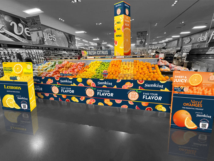 As consumer interest in fresh citrus rises, Sunkist remains committed to providing retailers with merchandising solutions that drive sales while fostering an exceptional shopping and educational experience. These new options reflect Sunkist’s ongoing dedication to meeting the evolving needs of its retail partners. In preparation for the upcoming season, Sunkist marketing worked closely with its sales team, surveying team members and measuring customer feedback relevant to its merchandising toolkit and shopper-marketing programs. With limited floor space often being a primary challenge, our new space-efficient displays are engineered to fit seamlessly into any story layout. Additionally, retailers can tailor displays and secondary materials based on available space and inventory throughout the season, as the buildable and modular designs allow for easy customization, ensuring citrus is prominently featured during key shopper milestones without overwhelming the sales floor.