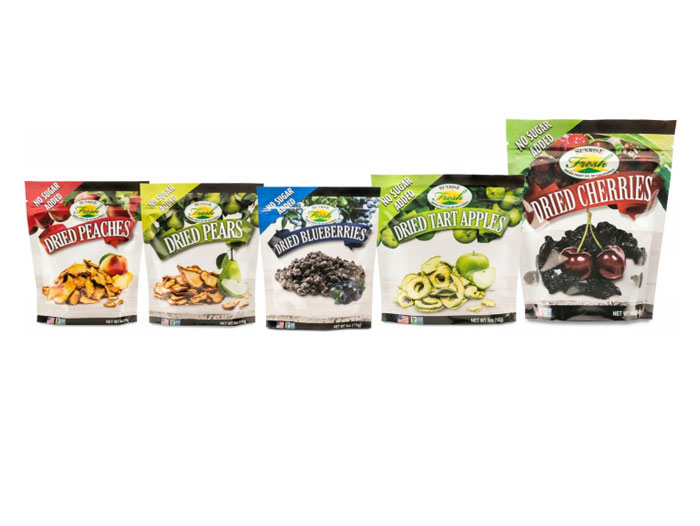 Consumers will have the convenience of purchasing either 8 oz. or 16 oz. bags of Dried Sweet Cherries, 6 oz. bags of Blueberries or 5oz. bags of Apples and having them delivered to their home or place of business.