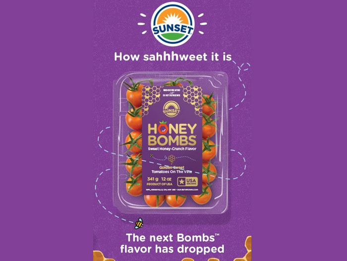 Kingsville, ON – First came Flavor Bombs®, SUNSET’s first on-the-vine snacking tomato offering, then Sugar Bombs®, a grape tomato-on-the-vine. We all know good things come in threes and SUNSET® is reinvigorating the snacking category once again with their newest addition to the uber successful Bombs™ lineup of on-the-vine snacking tomatoes. Honey Bombs™ golden sweet cherry tomatoes-on-the-vine will hit store shelves this May and the results are sure to be explosive!