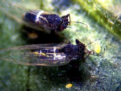 The potato psyllid, Bactericera cockerelli, causes harm to potato plants by feeding on them and by infecting them with Candidatus Liberibacter solanacearum, the bacterial culprit behind zebra chip disease. The name “zebra chip” refers to the dark stripes that form inside affected potatoes that are sliced and fried to make chips. Outbreaks of zebra chip fueled by psyllid feeding have caused millions of dollars in losses to the potato industries of the United States and Mexico. The disease also is problematic in New Zealand.
