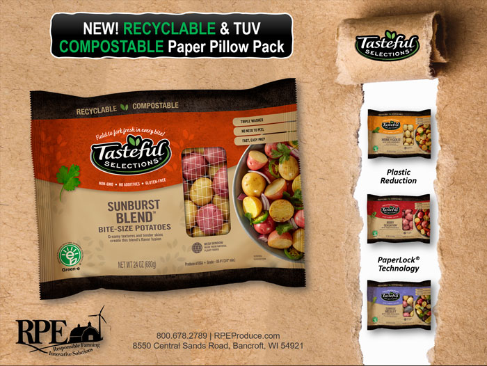 Arvin, Calif.,— Tasteful Selections®, leading the bite-size potato category in innovation and sustainability is pleased to announce the limited launch of its new 100-percent plastic-free, recyclable and compostable packaging.