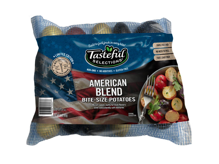 The American Blend features a trio of Tasteful Selections varieties including Ruby Sensation®, Purple Passion™ and White Delights. “The new pairing of these three varieties will really give this new, American Blend, the perfect patriotic visual of red, white and blue,” said Tim Huffcutt, Vice President of Sales and Marketing Operations. “We are eager to bring these bite-size potatoes to market, just in time for summer.”