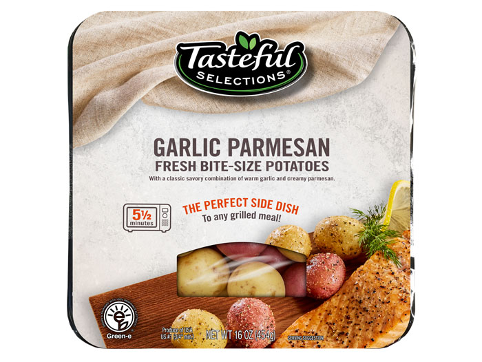 Each product features 16 oz. of our fresh Sunburst Blend™ bite-size potatoes, custom-blended seasoning packet packed in the convenient microwaveable tray. Consumers can prepare these tasty side dishes in the microwaveable or start cooking the potatoes in the microwave and then finish them on the grill, as described on the back of the pack.