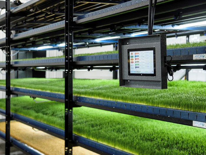 The second technology is CubicFarms’ HydroGreen System for growing nutritious livestock feed. This system utilizes a unique process to sprout grains, such as barley and wheat, in a controlled environment with minimal use of land, labour and water. The HydroGreen System is fully automated and performs all growing functions including seeding, watering, lighting, harvesting, and re-seeding – all with the push of a button – to deliver nutritious livestock feed without the typical investment in fertilizer, chemicals, fuel, field equipment and transportation. The HydroGreen System not only provides superior nutritious feed to benefit the animal, but also enables significant environmental benefits to the farm.