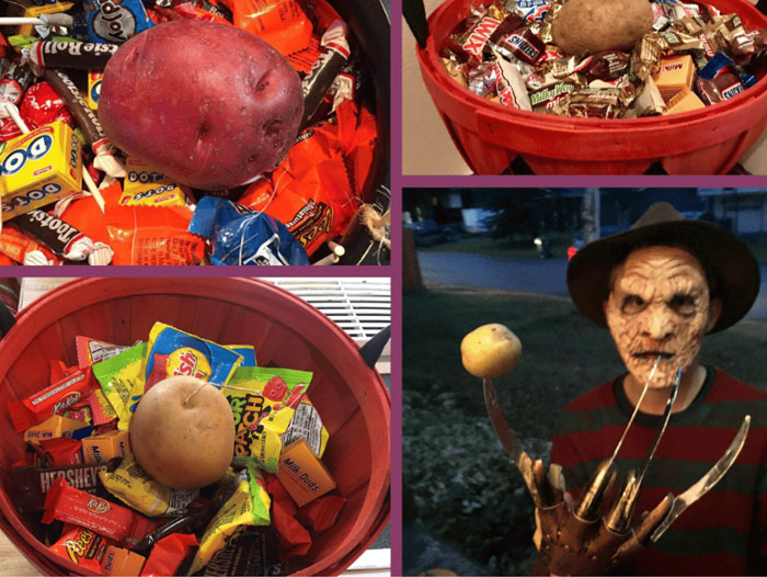 Want to surprise and delight your trick-or-treaters? Offer them a potato! Revelers nationwide have begun offering spuds as a fun alternative to candy. “It honestly started as a joke,” explained Pat Foy, a self-employed contractor in Lancaster, Pennsylvania. “I thought, if I’m going to give something out to kids on Halloween, I don’t want to just give them something that makes them go nuts. I’m of Irish descent, so potatoes made sense. I gave away big baking potatoes, and before I knew it, it took on a life of its own. Who would’ve thought?”