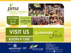 Guatemala's participation this year will be with a 600 square feet pavilion where a diversity of agricultural products will be shown, there will be as well, the opportunity to promote AGRITRADE Expo & Conference 2015 by providing the invitation to all the international buyers who visit our national pavilion. Guatemala has been an important part of PMA Fresh Summit for the past 27 years.
