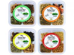 It’s rarely about the lettuce when you eat salads – it’s about the toppings. My Salad Bar® was designed to add extra flavor and crunch to your lunch. The line offers four flavorful and bold salad topping combi-nations conveniently packaged and ready to enjoy in the salad section of your produce department. Each combination has four delicious toppings to enjoy. The original variety contains walnuts, cranber-ries, sesame sticks and sunflower seeds. Some highlights of the other flavors include blackened pumpkin seeds, honey roasted peanuts and black bean sticks. The fourth flavor in the line is Indian Cuisine with some added spice of crispy fried lentils, spiced rice flour noodles, and fried split chickpeas.