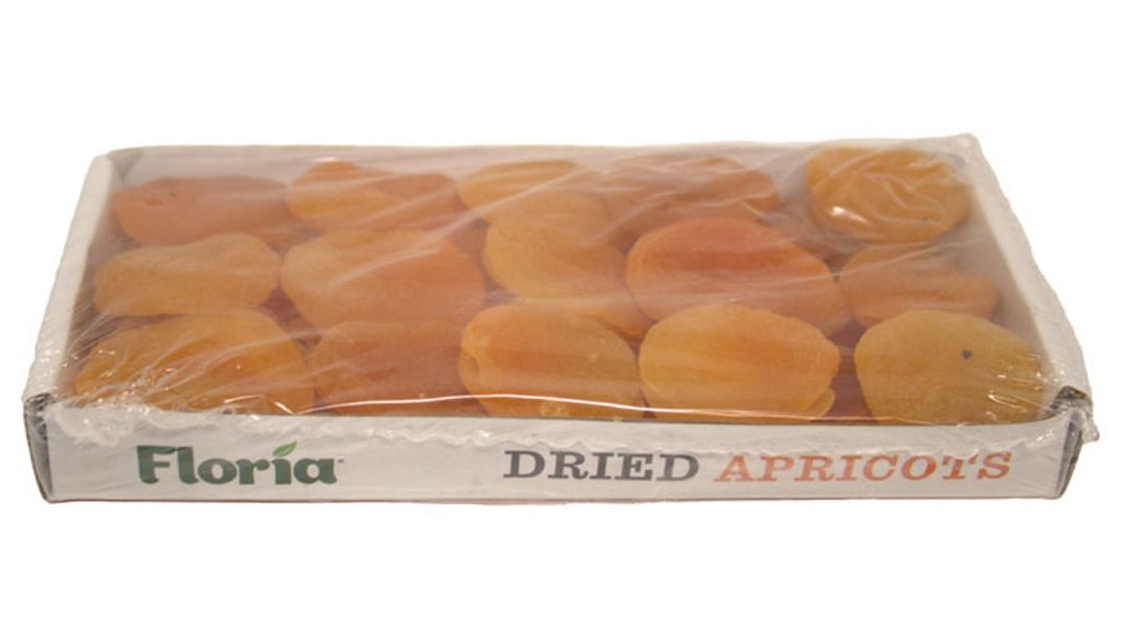 The recalled 200 Gram paper packaging Labeled Floria Dried Apricots.