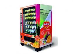 The vending machine contains items that have less than 120 calories each and includes bananas, pineapples, apple slices, grapes, baby carrots, and celery. Prices range from $1 to $2.25.