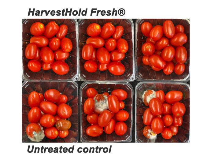 “The grape tomatoes treated with HarvestHold Fresh reduced weight loss by 50 percent, maintained firmness during cold storage, extended firmness when brought to room temperature, and had 25 percent less decay compared to the untreated tomatoes,” says Dr. Sargent, professor of postharvest horticulture at the University of Florida.