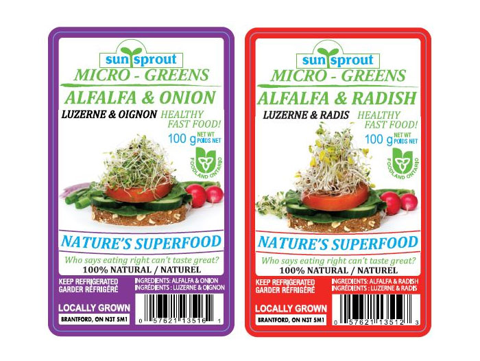 Sunsprout Natural Foods is recalling Sunsprout brand Micro – Greens, Alfalfa & Onion and Alfalfa & Radish from the marketplace due to possible Salmonella contamination. Consumers should not consume and retailers, restaurants, and institutions should not sell or use the recalled products described below.