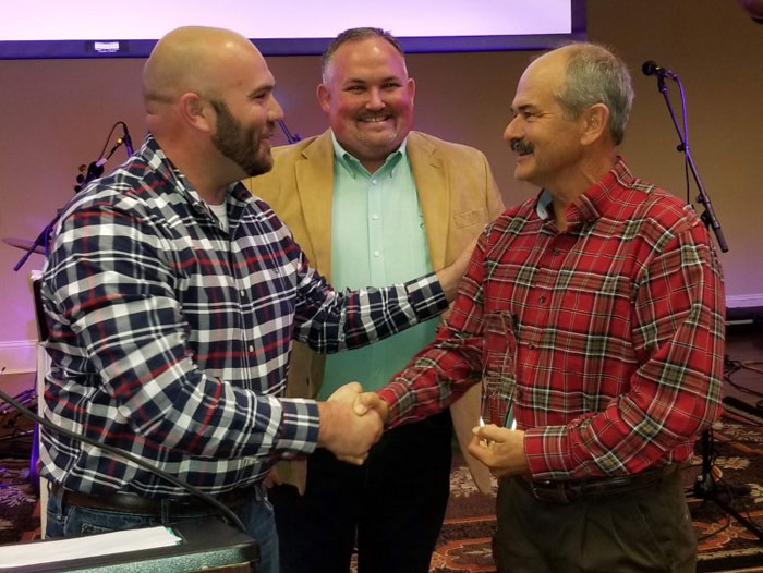 “The grower of the year award is a prestigious award,” says Cliff Riner, vice chairman of the Vidalia Onion Committee and crop production manager with G&R Farms, in Glennville, GA. Riner presented the award.