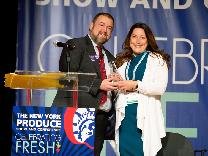 Last year the company was one of ten Innovation Award winners for its newest specialty tomato variety, Lorabella Blossom®, a tomato that boasts a blissfully bright flavor profile. This year in addition to being an Innovation Award winner the company was also the overall award winner of the competition for Stackable Snackables™ receiving the prestigious Joe Nucci award. Village Farms Director of Brand Marketing and Communication, Helen L. Aquino, accepted the award from Jim Prevor, CEO & Editor-in-Chief of Produce Business magazine and Joe Nucci’s sister, Lorri Koster, at the Thought-Leader breakfast.