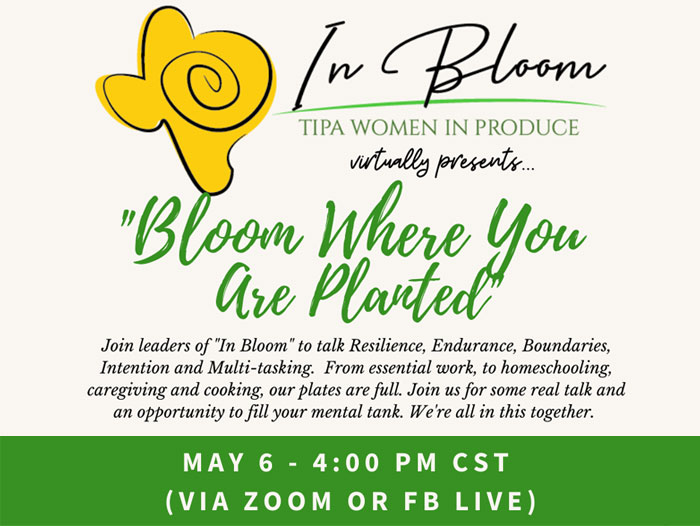 Mission, Texas:  The TIPA In Bloom Women’s Committee is hosting a virtual experience on May 6, 2020 at 4:00 pm CST to offer stories and shared support for surviving and finding ways to thrive in difficult times.
