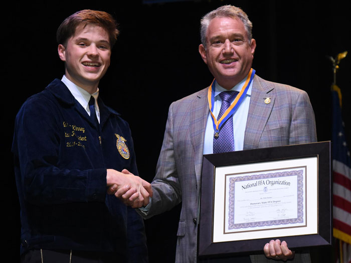 GLENNVILLE, GA – During the 2022 annual Georgia State FFA Convention, Walt Dasher of G&R Farms in Glennville, GA was awarded an Honorary Degree from the Georgia State FFA Association. This award is bestowed upon those deserving for their demonstration of outstanding service to agricultural education and Georgia FFA.