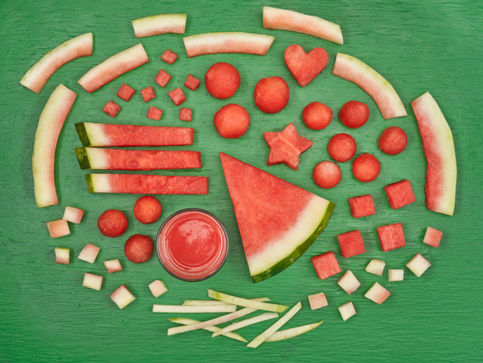 According to NWPB’s consumer research, only 18% of consumers use the whole watermelon, and less than 40% of respondents know the rind is edible. In fact, watermelon is 100% edible, flesh, juice and rind (even the green skin!).