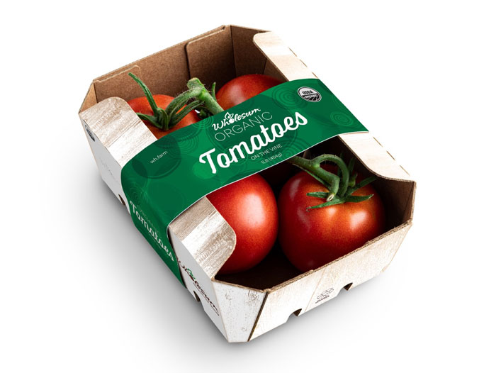 The new packaging consists of a recyclable and biodegradable corrugated formed tray as well as a biodegradable band. Each tray is custom made to fit two counts of each vegetable and one pound of tomatoes on the vine. Moisture-resistant and sturdy, the trays ensure breathability, visibility, and food safety from farm to shelf.