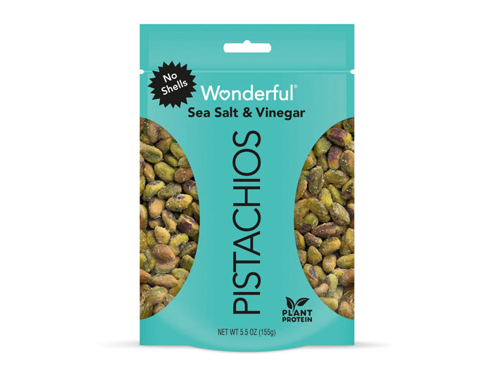 Launched in March 2021, Wonderful Pistachios No Shells Sea Salt & Vinegar has just the right amount of sea salt and vinegar for an ideal balance of sour and savory. Wonderful Pistachios No Shells contain 6 grams of plant protein per serving and is one of the highest quality protein snack nuts on the market.